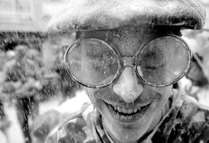 1月24日,一名男子在西班牙西北部的一座村庄参加狂欢节中的“面粉大战”。 新华社/法新