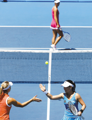 25日,经过两盘激烈的争夺,晏紫与自己的美国搭档马泰克以两个6:4击败了郑洁/韦斯尼娜这对中俄组合。