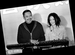 图为周润发与周迅合奏古琴,大展孔子神韵。 据中新社发
