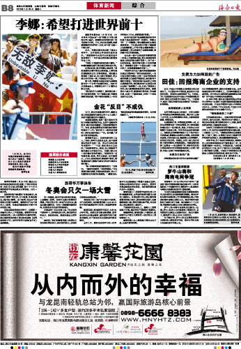 海南日报 体育新闻 016 2010-01-261 2010年01月26日 星期二