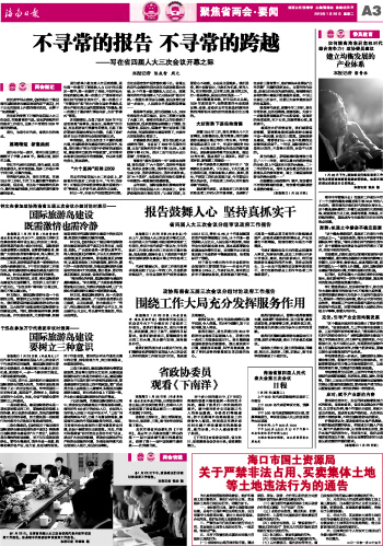 海南日报 聚焦省两会·要闻 003 2010-01-261 2010年01月26日 星期二