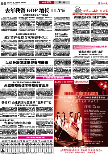 海南日报 本省新闻 006 2010-01-261 2010年01月26日 星期二