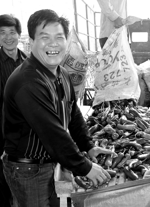 | 1月22日,琼海辣椒价格看好,瓜菜老板喜笑颜开。