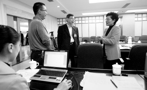 | 1月26日,在会后的休息时间里,万宁代表团几位代表的话题还是离不开政府的工作报告。 本报记者 李英挺 摄 |