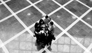 1月26日,在分组审议会场,几家媒体记者抓住代表审议休息时间紧张采访。 本报记者 李英挺 摄