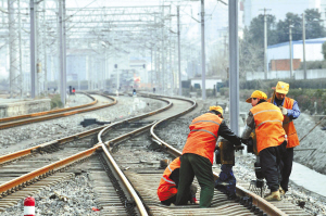 1月26日,铁路养护人员在合肥铁路段进行路基养护。 华东铁路第二通道的主要组成部分阜阳至淮南段、淮南至合肥段及水家湖至蚌埠段电气化改造工程当日正式启动。这三条铁路线全长270多公里,是华东煤炭运输的主要通道,经过电气化扩能改造后将满足电力机车及动车组的运营要求,大大提升运行效率。 新华社记者 王雷 摄