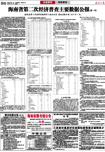 海南省第二次经济普查主要数据公报(第一号)(海南省第二次经济普查领导小组办公室 海南省统计局 2010年1月)