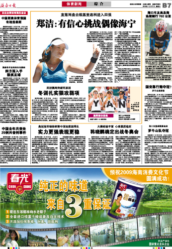 海南日报 体育新闻 015 2010-01-271 2010年01月27日 星期三