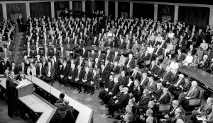 | 1月27日,在美国首都华盛顿国会山,美国总统奥巴马(前左一)发表国情咨文讲话。 新华社/法新 |