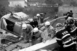 造成1死1伤 1月30日,救援人员在事故现场施救。 当日,湖北省宜昌城区一座七层高的楼房在拆除过程中发生坍塌,落下的砖石将现场作业的一辆挖掘机埋没,造成1人死亡,1人受伤。目前,事故原因正在调查中。 新华社发