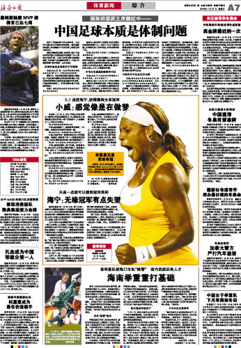 海南日报 体育新闻 007 2010-01-311 2010年01月31日 星期日
