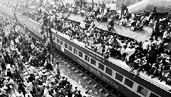 | 印度城乡差别巨大,大量农村人口到城市打工,到了重大节日“迪瓦利”前后,火车交通线拥挤不堪。火车上严重超载,车内车顶都是急切要回家的人。铁路管理人员只好任由这些人随火车缓慢前行。 |