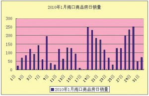 2010年的第一个月,是一个可以书写进海南房地产业史记的时期,月初时海南国际旅游岛新闻发布,犹如被点燃的导火索,引爆了海南房产积蓄已久的力量,短短时间内,海南房价节节攀升,销售火爆,作为海南省会城市海口,其商品房市场更是炙手可热。据海南搜房网统计数据显示,2010年1月海口商品房总签约3510套,平均每日成交约113套;1月海口商品房签约总面积为411840.61平方米;2010年1月海口商品房总销量环比2009年12月总销量提升19.02%,平均日销售量增加约18套;临近月末,针对海南房产市场又出台了一系列的相关政策,用于调整海南房产市场,进一步促进了海口商品房市场的火热。