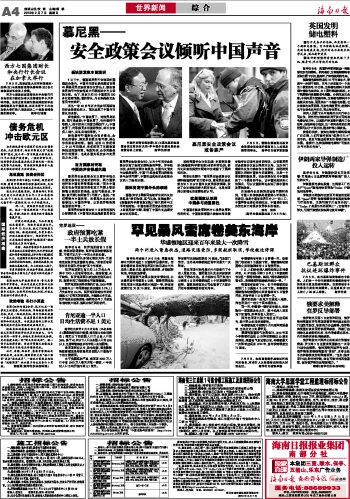 海南日报 世界新闻 004 2010-02-071 2010年02月07日 星期日