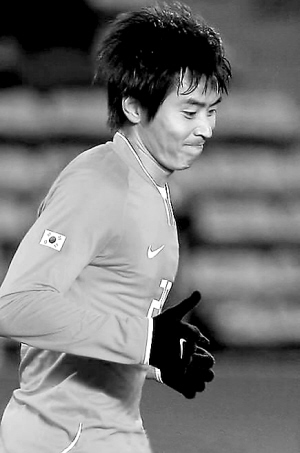 2月7日,在东亚四强赛第二比赛日的争夺中,卫冕冠军韩国队5:0横扫中国香港队,首轮过后积3分占据榜首。图为韩国队前锋李东国庆祝进球。 小新发 |