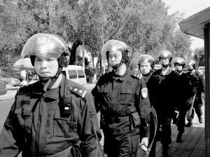 2月7日上午9时,新疆乌鲁木齐市突然下起了小雪。在驻防区巡逻的海口援疆特警不受丝毫影响,依然迈着稳健的步伐。他们对雪天已习以为常。至这一天,海口市公安局特警支队百余名特警已在新疆驻守了整整7个月。