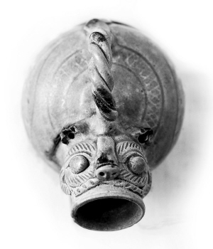 最特别的,是一只小巧的越窑青瓷虎头尿壶。这是一只憨态可掬的虎头,虎眼、虎鼻都近乎人化,一张虎嘴却张得圆溜圆溜的。省藏协会长欧宗文说,“在北方民间,虎是一种吉祥物,古时候就被人们卡通化了,被视为避邪之物,也被巧妙地运用到生活的方方面面,故民间有给孩子做虎头帽、虎头鞋、虎头枕的习俗。”