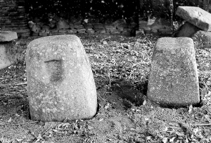 在大榕树下,还有一块枪眼石,上面凿着几个拳头大小的窟窿,便于放枪。据说古时候为了保护家园不受海盗和土匪的侵袭,村民们便在村口建起防御工事。