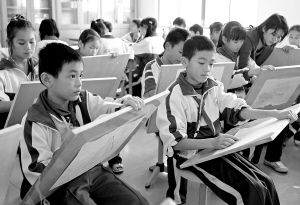 | 一月二十二日,琼中思源学校的学生在上美术课。 本报记者 林萌 摄 |