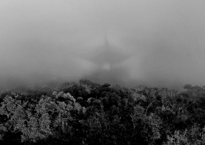 日前,亚龙湾热带天堂森林旅游区的山顶公园上出现海市蜃楼奇观,云雾缭绕的山顶上出现了沧海楼的影子,朦朦胧胧的影子被光环环抱着,时隐时现,每次出现约3到4秒钟,随后自然消失。 北京游客 黄庆优 摄