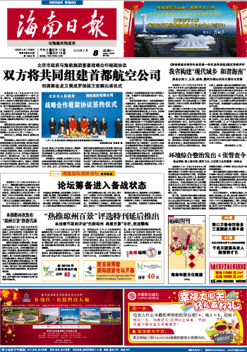 海南日报 头版 001 2010-02-081 2010年02月08日 星期一