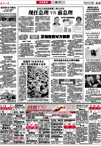 海南日报 世界新闻 009 2010-02-081 2010年02月08日 星期一