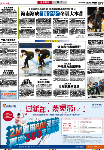 海南日报 体育新闻 015 2010-02-101 2010年02月10日 星期三