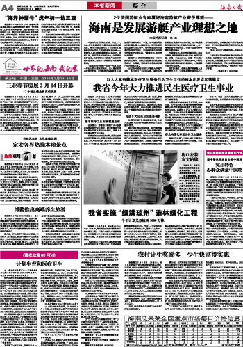 海南日报 本省新闻 004 2010-02-101 2010年02月10日 星期三