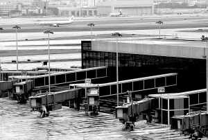 2月11日,一架客机正在新航站楼旁的跑道上滑行。 上海虹桥国际机场2号航站楼目前已进入功能性装修阶段,初显现代化规模和气势。作为2010年上海世博会重要建设项目的上海虹桥机场2号航站楼将于今年3月16日投入试运营。 新华社记者 陈飞 摄