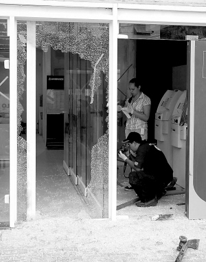 巴西圣保罗: 一家银行遭窃未遂 2月10日,警察在巴西圣保罗南部的一家遭打劫的巴西联合银行分行内勘察。当日凌晨,至少5名歹徒袭击了这家银行。歹徒在警察及时赶到后逃离现场,银行财产未受损失。 新华社/圣保罗通讯社