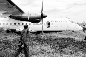 二月十一日,印尼一架载有四十七名乘客的国内航班客机在东加里曼丹省一块农田里紧急降落。此次事故造成几名乘客受轻伤。 新华社/法新