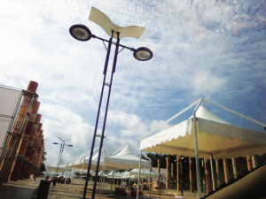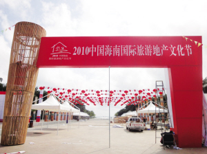 喜庆的大红灯笼挂上了,带有海南日报字样的卷轴龙门立起来了,具有海岸风情的展棚搭建好了……经过几天的紧张施工,“2010中国·海南国际旅游地产文化节”展会搭建工作已完毕。目前,展区布置的扫尾工作也已经基本完成。大东海广场上不停有行人打听房展会相关情况,各个展位的进场工作更是热火朝天,到处洋溢着浓厚的房展气息。参展商已经准备就绪,有的礼仪小姐为了熟悉环境,特地提前入场进行演练和相应的培训。她们有的为购房者进行简单讲解,还有的则负责吸引人气。盛木·天一方为展示项目芦苇灯的浪漫效果,从海口运来了芦苇灯,安装在展位周边。