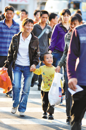 | → 2月11日,海口秀英码头,母子俩开开心心地回家团圆。 |