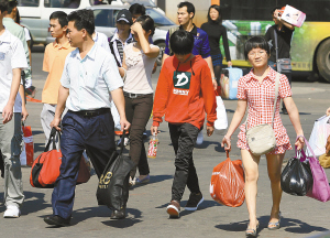 | → 2月11日上午,海口汽车南站随处可见脚步匆匆的旅客。 |