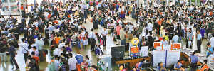 | ↑ 2月11日上午, 海口汽车南站候车大厅内人头攒动,一派喧闹景象。 |