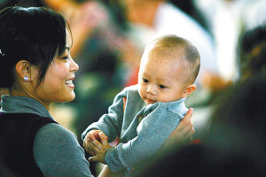 | ↑ 2月11日上午,在海口汽车南站候车大厅,一对母子在亲昵。 |