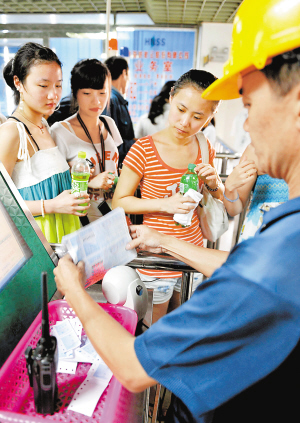 | ↑ 2月11日,海口秀英码头,工作人员正在给几位盼望着早点到家的学生检票。 |