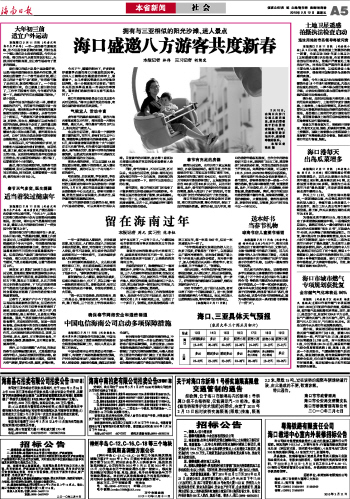 海南日报 本省新闻 005 2010-02-121 2010年02月12日 星期五