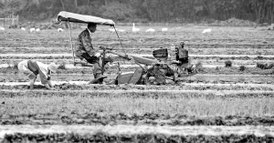 “春节过到年十五。”这是昔日海南农村的习俗。但是,现在农民打破习俗,抢时间,年未过完就投入到紧张的春耕备耕中。图为2月20日大年初七,海口市灵山镇田上村村民紧张地春耕。 本报记者 李英挺 摄