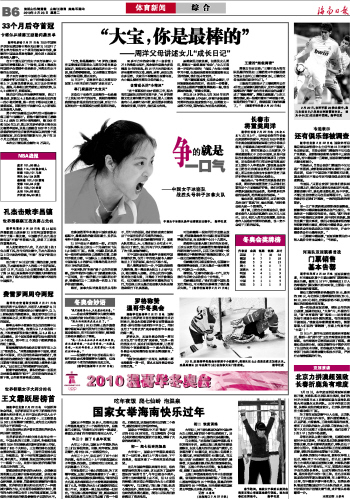 海南日报 体育新闻 014 2010-02-231 2010年02月23日 星期二