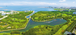 万绿园位于海口市滨海大道的中段,总面积1070亩。现阶段主要以公共绿地为主,分16个区,即大门区、广场区、内湖区、儿童游乐区、草坪区、竹林区、热带观赏植物区、高尔夫球练习场等。万绿园独具热带滨海特色和生态风景园林特色,与蓝天、碧水、现代化高楼融为一体,成为都市中的一道迷人风景线。