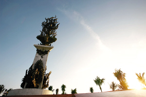 凤凰岛长1250米,宽约350米,占地面积547.5亩。该岛三面依托山景,四面临海,拥有得天独厚的山海天旅游风光,具备海上娱乐、水上运动等度假旅游条件。凤凰岛上规划建设七大项目,即一栋超五星级酒店(包含酒店及国际会议中心)、国际养生度假中心(即五栋产权式酒店)、商务会所(别墅型产权式酒店)、海上风情商业街、国际游艇会、奥运主题公园和凤凰岛国际邮轮港。凤凰岛的综合发展主题定位是“东方迪拜、海上度假天堂”。