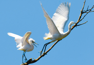 白鹭又称鹭鸶,在中国古代也称“丝禽”,被人们称为“吉祥之鸟”,属鸟纲鹤鹳形目鹭科。它们天生丽质,浑身洁白,身材修长,繁殖期间头上会生出2根10余厘米长的羽毛,胸背处也会生出丝状的长羽毛,随风起舞时,非常美丽。