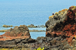 万年前的一次火山爆发,岩浆突破地壳,喷涌而出流向大海,冷却后的岩石,历经万年海浪撞击、冲刷,在儋州、临高的后水湾一带留下了奇异的火山海岸———绵亘十余里的嶙峋怪石和浅海中的巨礁。