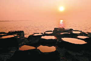 后来,盐工偶然发现在海边的石头上有凹积的海水被烈日晒干后结晶成白盐花。于是,盐田人改“煮海为盐”为“晒海为盐”,就地取材,将海岸边火山岩石凿成浅浅的砚状石槽,并把海水涨潮时涌入低洼海滩里的海水舀到石槽里,让烈日曝晒成盐。