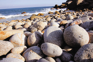 大花角位于万宁和乐镇联丰村,距万城市区18公里。大花角由前鞍和后鞍两个山峦构成,双峰之间有一处宽近百米的峡谷,与双峰一起伸向浩瀚的南海,于是形成一个天然的海湾,这里弓状的数百米长的海滩上,有洁白的沙带,岸边是密密麻麻的卵石。弓状的卵石滩上,大石小石你拥我挤地堆积在一起。大的如斗,小的如蛋,圆的、扁的,一个个光滑透碧,在灿烂的阳光下闪闪烁烁,石体上,有纹有景,如琢如磨,似画非画,蓝赤青黄橙五彩缤纷,令人眼花缭乱。
