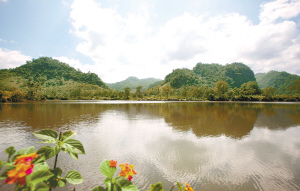 风景区内有“雅龙洞”和“光益洞”,山形奇巧,独立成峰,相簇成岭,山、水、洞相互交融,山形地貌酷似桂林山水,自然景色十分迷人。这里山不太高有洞,河不太宽似镜,湖水清澈终年不涸;奇峰倒影、碧水青山、牧童悠歌、渔翁闲钓、古朴的田园人家、清新的山间空气……一切都显得那么诗情画意。春天,木棉树开着火红的木棉花映红着山区;风景区里还有大量的芒果树、橡胶树和香蕉林,神奇的百年“芒果王树”仍然硕果累累。
