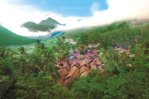 | 王下乡洪水村保存完好的黎族金色茅屋。 |