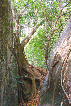 西山岭位于乐东黎族自治县九所新区东北方,距西线高速公路九所出口8公里,与古海遗迹景观仅一山之隔,处于海南省西部旅游专线上,景区2平方公里,距九乐二级公路3公里,地理区位优越,主要由三座石山组成。石山中有石棚、石洞、石门、石隙、石台数处,主要景观有“将军岩”、“大小龙门”、“通天门”、“侧身隙”、“佛手擎天”、“坐石奇榕”、“寿保宫”、“群象石”、“览景台”、“寿龟石”、“仙乐宫”、“神龟探天”等。