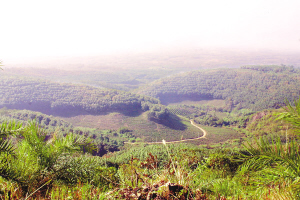 白沙陨石坑位于白沙黎族自治县牙叉镇东南9公里白沙农场境内,直径3.7公里,是我国发现的第一个陨石坑,为距今约70万年前一颗小行星坠落此处爆炸而成。陨石坑周缘环形山脊连续较好,仅在西南缘受两条溪河冲刷而出现豁口。置身于陨石坑内,举目四望,但见郁郁葱葱,低缓山坡上,茶树密布,排列成行,绿意盎然。难以想象70万年前这里发生过陨石自天而降,冲击大地,造成岩石碎裂熔化、岩浆溅射四周的惊天动地景象。